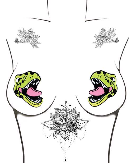Neva Nude Black Light Dinosaur Pasties - Green O/S