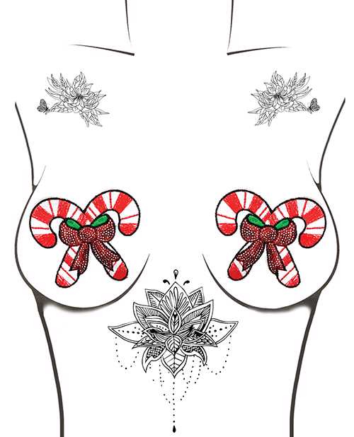Neva Nude Sequin Candy Cane Pasties - Red/White O/S