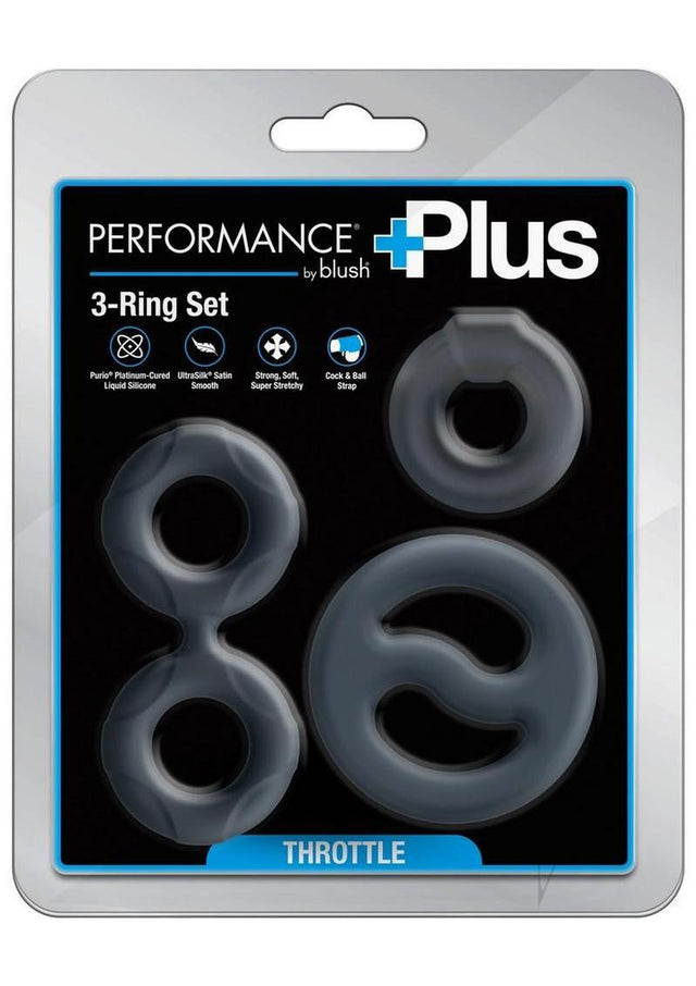 Performance Plus Throttle Silicone Cock Ring Set (3 Piece) - Black