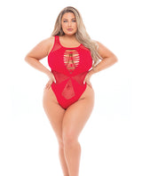 Pink Lipstick Highneck Bodysuit (Fits up to 3X) Red QN