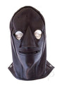 Black stiff leather robust BDSM full hood. Two opening for eyes and opening forandnbsp;the mouth with a zip closure. One size fits most. Neck size up to 17 inches and head size is 24 inches but can expand furtherandnbsp;due to lace tie fastening.