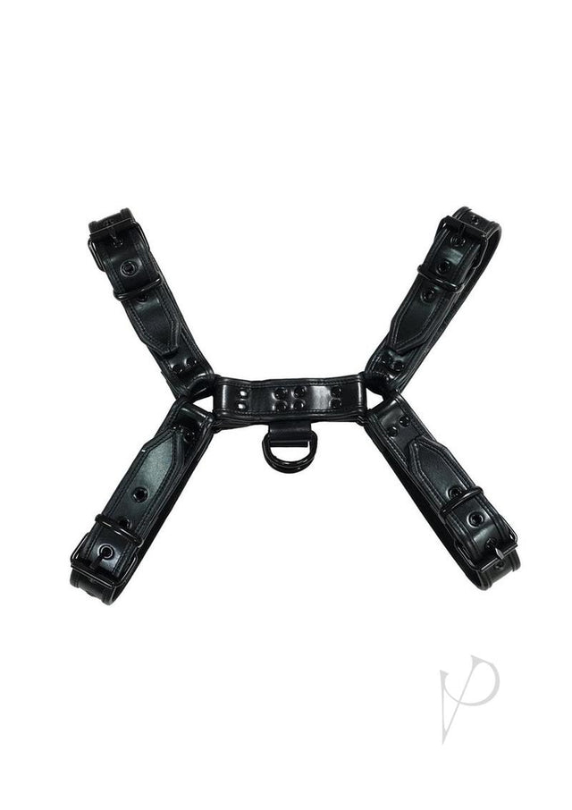 Show off your chiselled chest and shoulders with this Leather Harness. Black with Black Accessories. Available in different sizes and adjustable via the straps. Express your sexuality, show off your body and draw the attention of others.