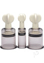 Experience powerful suction on your nipples and clitoris when you play with this easy-to-use sucker set! Without the complication of bulky tubes and pumps, this set draws blood into your desired area, engorging and enhancing sensitivity! Place each cylinder flush against the skin and use the simple twist mechanism to increase pressure within the vacuum. Experiment while you masturbate or share the excitement with a partner! Your nipples and clit will be even more responsive while theyre temporarily enlarged!