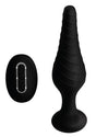This textured, tapered plug will vibrate within your ass with just the push of a button! Let the pleasure take control with this easy-to-use, remote-controlled, rechargeable anal vibrator! Whether you appreciate the convenience during solo play, or the power during couples play, the wireless remote is an exciting feature for use at home or out on the town! Simple buttons allow you to move back and forth between 3 speeds and 7 patterns of vibration with a remote range of 15 feet. The narrow tip allows for a comfortable insertion while the spiraling ridge winds up the plug for an internal massage. Made of premium silicone, this pleasure tool is phthalate-free for body safety, and non-porous for thorough sanitization. Clean this waterproof device after use with warm water and mild soap or toy cleaner.